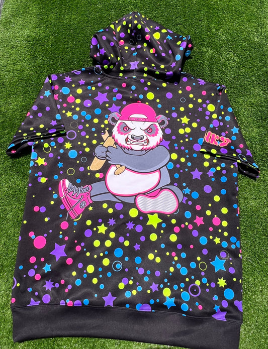 Black with Neon Stars Unisex Short Sleeve Scuba Hoodie