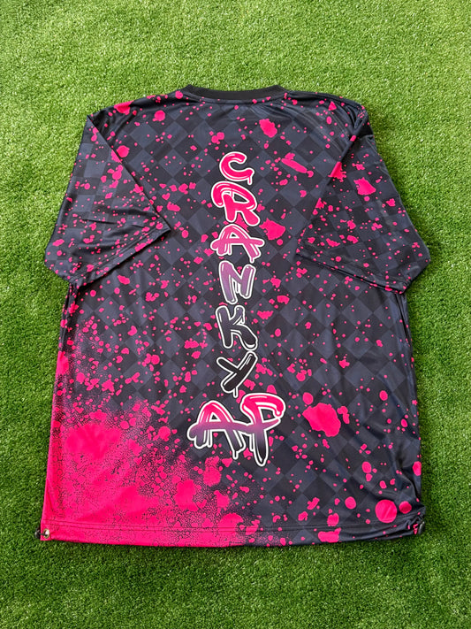Hot Pink Graffit Splatter Unisex Softball Jersey (front pocket and toggle bottom)